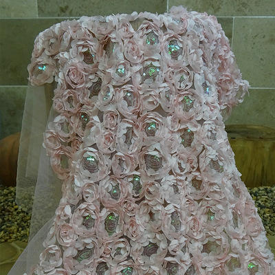 3D Rose үйлену маталарына арналған мата гүлдері Кілемдер Жұмсақ қалыңдық көйлектер қауырсын, жұмсақ қауырсын кружкасы бар, жылтыр сексиндермен жұптасады, гүлдер үш өлшемді және толы, нәзік және сәнді жанасады. Бұл үйлену тойының халаттарына, кешкі халаттарға, жабындарға, жабындарға, перделер мен үйлену безендіруге, романтикалық және талғампаз жанасуға жарамды. Жоғары серпімді және тыныс алатын дизайнымен оны қажет болған жағдайда кесуге болады және бұл үйлену тойының жоғары жабдықтарының тамаша таңдауы.