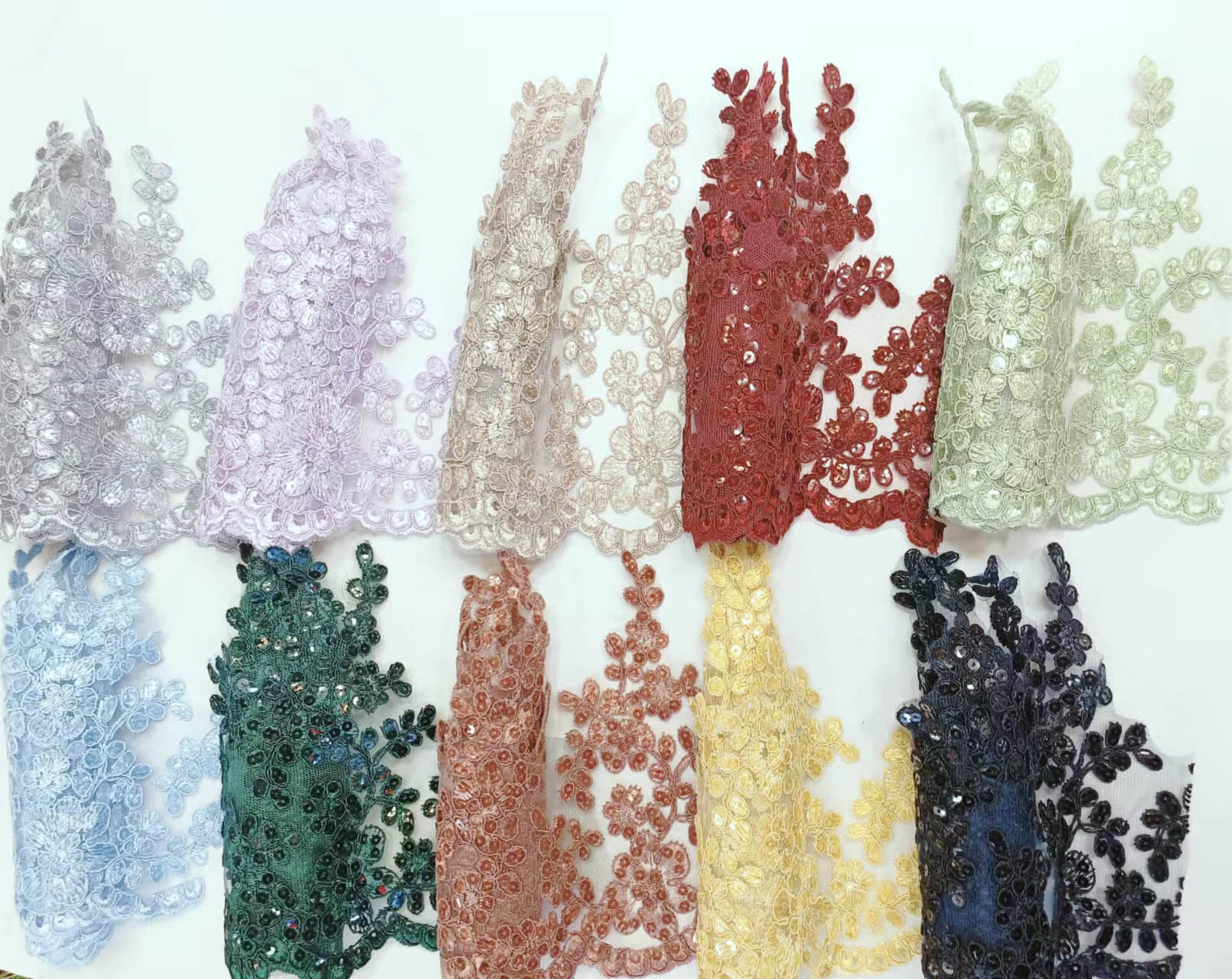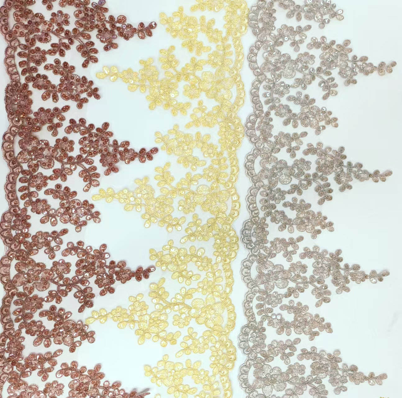 Керемет бриалдан жасалған француз кәрзеңді үйлену тойының шілтерімен үйлену тойының шекарасы, үйлену тойының шекарасы, білікті француз кружкасы, қолмен тігілген жылтыр стендтер, үлгілер, жеңіл және тегіс құрылымы бар үш өлшемді. Ақшылдық көйлектер мен кешкі шоқыларға арналған, ақырында, ақ, шампан алтын және басқа реңктерде қол жетімді жоғары деңгейлі әшекейлер