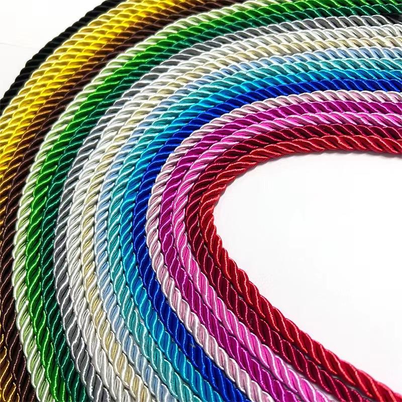 Қатты түс 7mm жіптері Түсті жібек арқанды безендіру Silk арқаны Табиғи Жібек арқаны, диаметрі 7 мм, диаметрі 7 мм, жылтыр және талғампаздыққа ие. Ол сыйлықтардың жоғары қаптамасына, үйлену көйлектеріне, қолмен жасалған керек-жарақтар мен үйді безендіруге жарамды. Ол икемді, тозуға төзімді және экологиялық таза. Ол түрлі классикалық қатты түс опцияларын ұсынады, жеке түстер мен ұзындықтарды қолдайды және тазартылған құрылымды бөледі